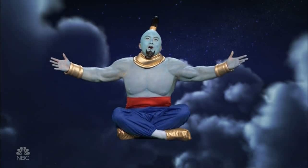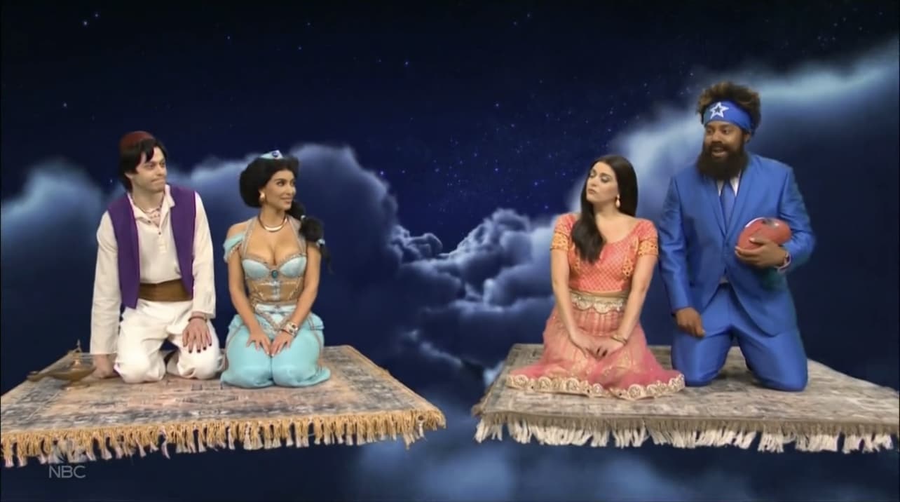 - An ok laugh early on with the show acknowledging that Aladdin is played by a white guy.