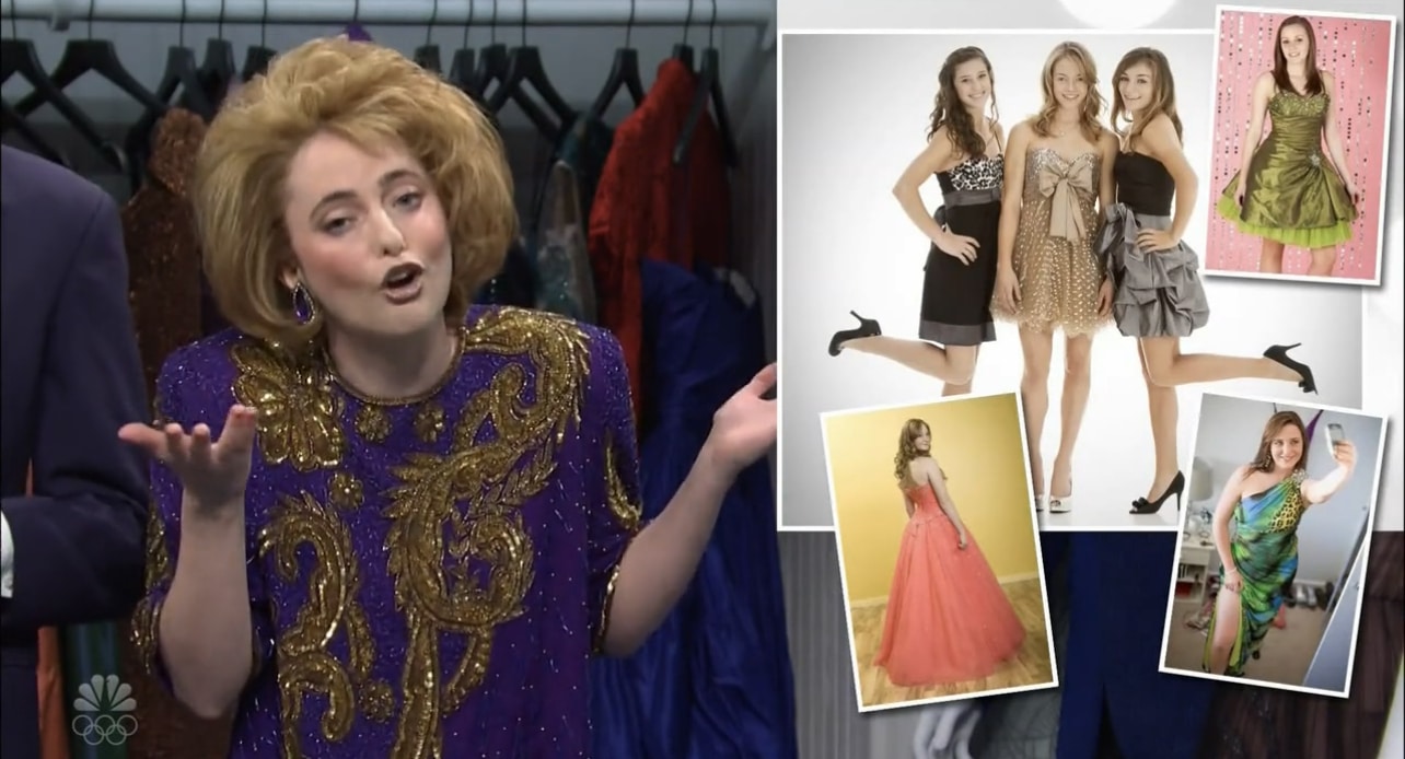 for winter formal, (PED) & (SRS) rent gowns & their off-putting son (AND)