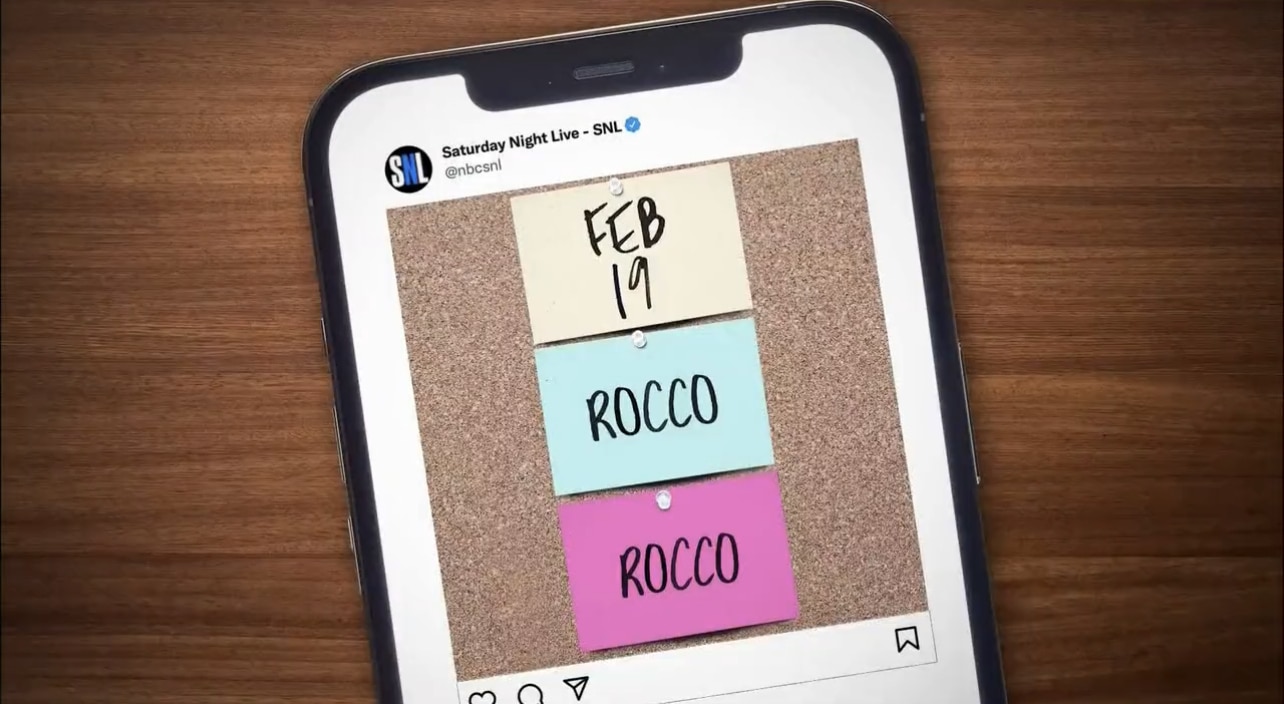 - A huge laugh from the reveal that Rocco will both be the host AND musical guest on SNL.
