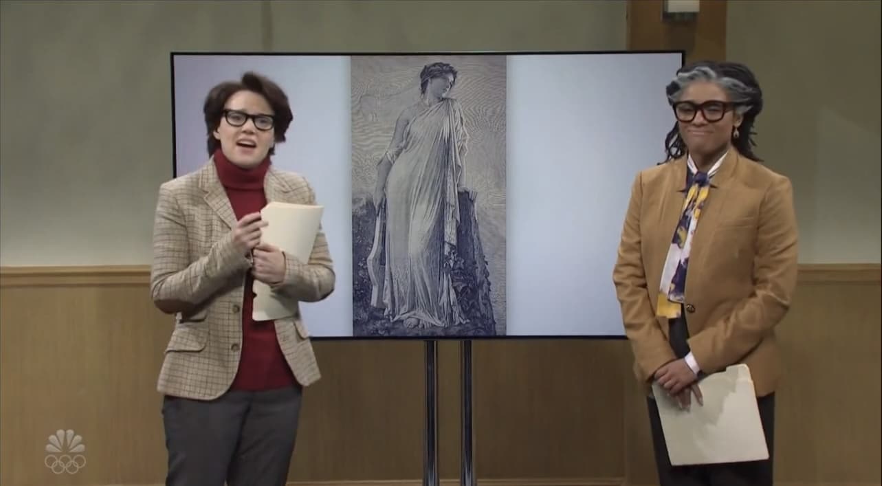There are a number of segments that I’m not quite as high on as you are, such as the New Governess sketch and the Sappho sketch, which I found to be weak, but not frustratingly awful like some of Cecily’s vanity pieces. And I don’t think that the Eric Adams sketch is a five-star masterpiece, but it’s still good.