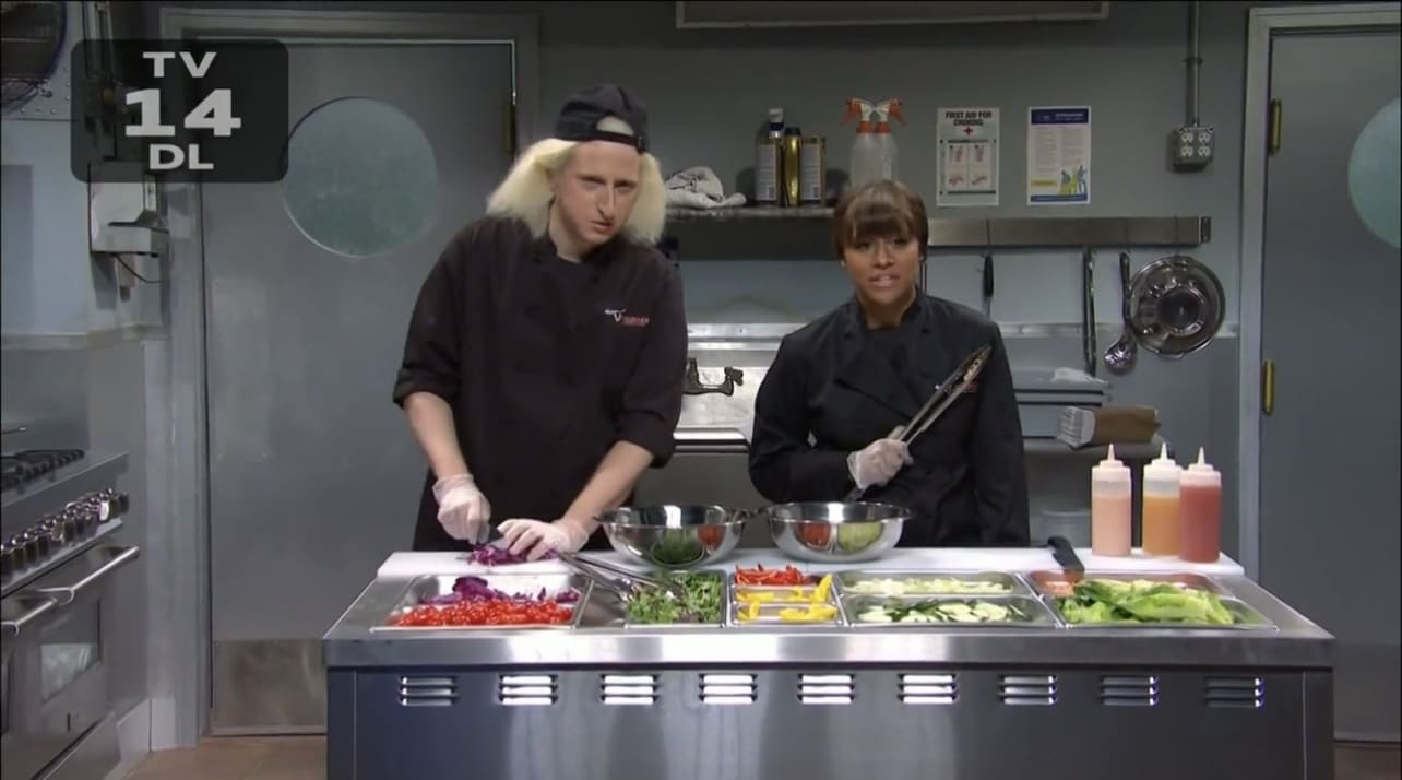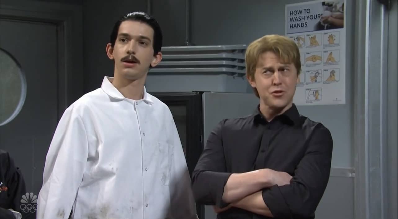 - You could tell this is a PDD sketch by how perfectly executed these absurdist non-sequitur lines, pretty much like the great Men’s Room sketch from earlier in the season.