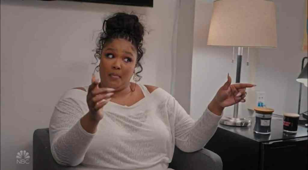 - I’m loving the turn with Lizzo delivering a dramatic speech to her husband, played by Andrew.