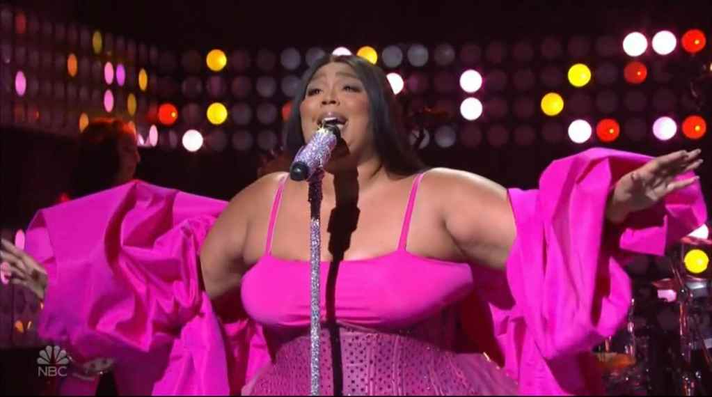 - A good laugh from Lizzo’s line about her wearing clothes.