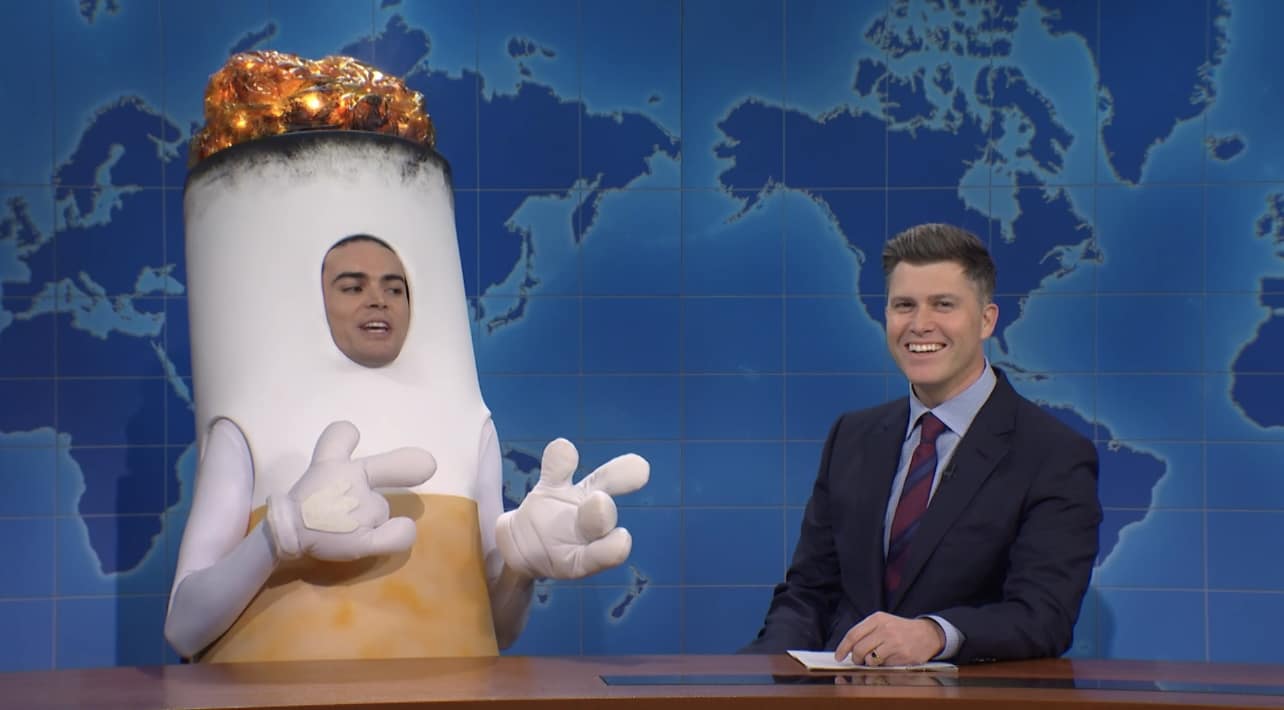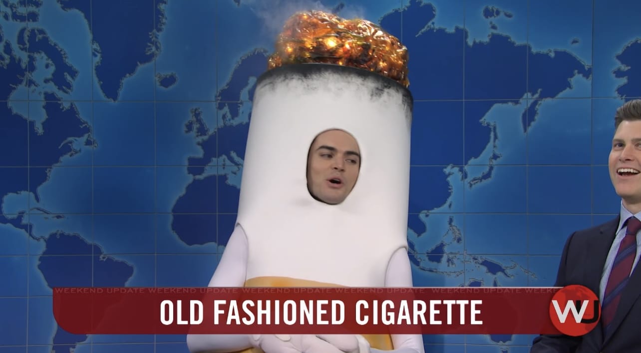 - Unlike a certain cast member, when Michael is dressed in a goofy outfit, I’m anticipating some patented, dry, strong humor complete with many hilarious lines. I’m definitely getting this from Michael here; the concept of him as a cigarette launching a defamation campaign against vaping is great.