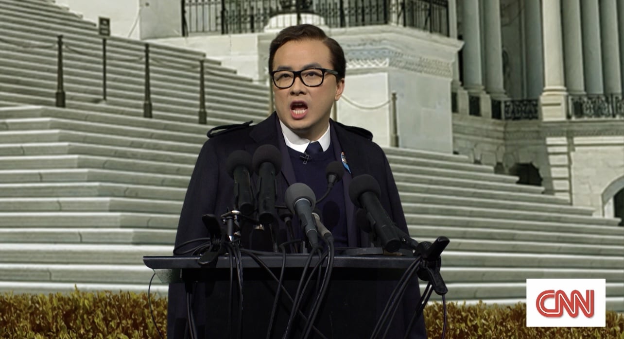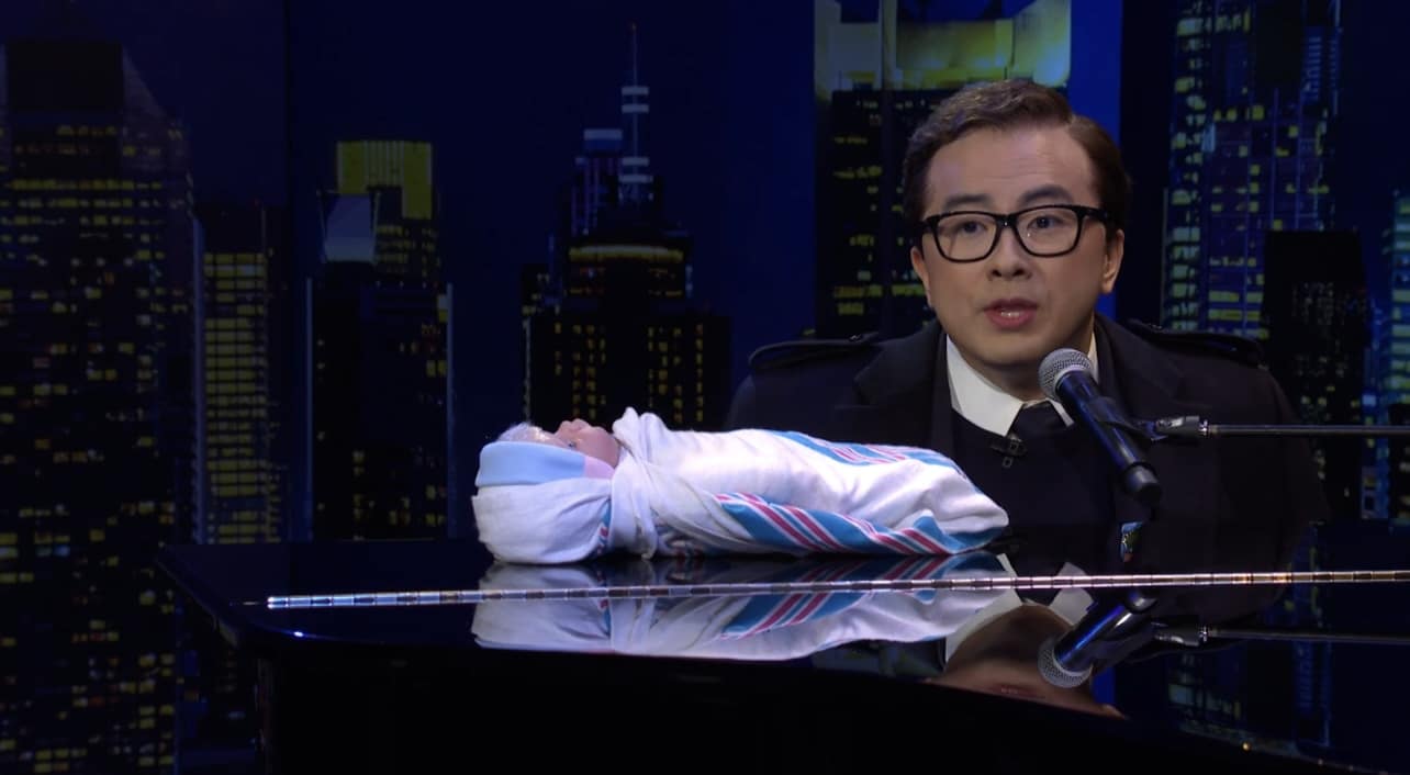 - Oh no, we are now getting a variation to the final Trumpwin cold open, with Bowen singing while playing the piano? I guess I spoke too soon.