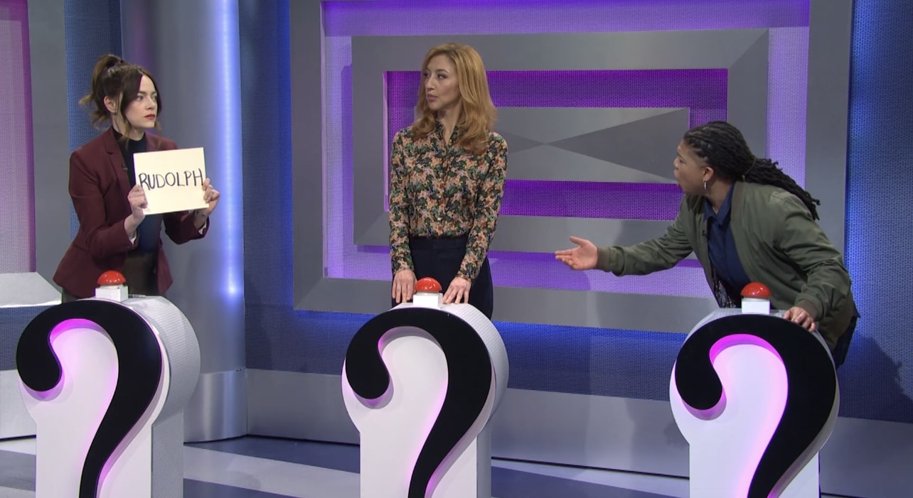 I can’t tell you how thrilled I was to see Longfellow FINALLY have a decent night after a string of episodes where he was all but invisible. His performance in the Question Quest sketch gave me serious Hader game show host vibes. I loved his deadpan delivery and the subtle escalation with him and Emma. Punkie was also hilarious in this. Easily my favorite sketch of the night.