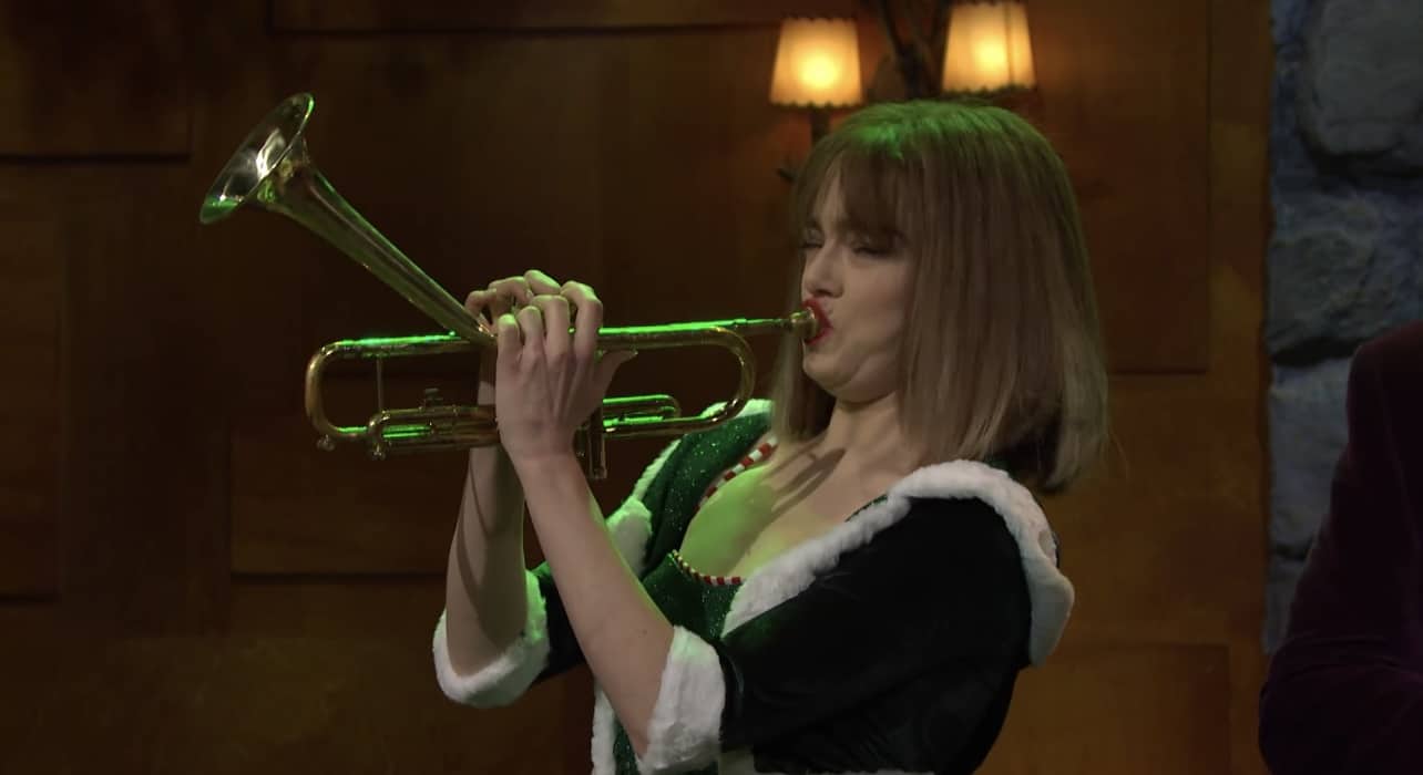 - Heh, Bowen taking Kyle Mooney’s rule cracked me up for some reason. And, I’ll admit, he’s pretty funny here, especially both his facial expressions while playing the instrument and the voice he’s using.