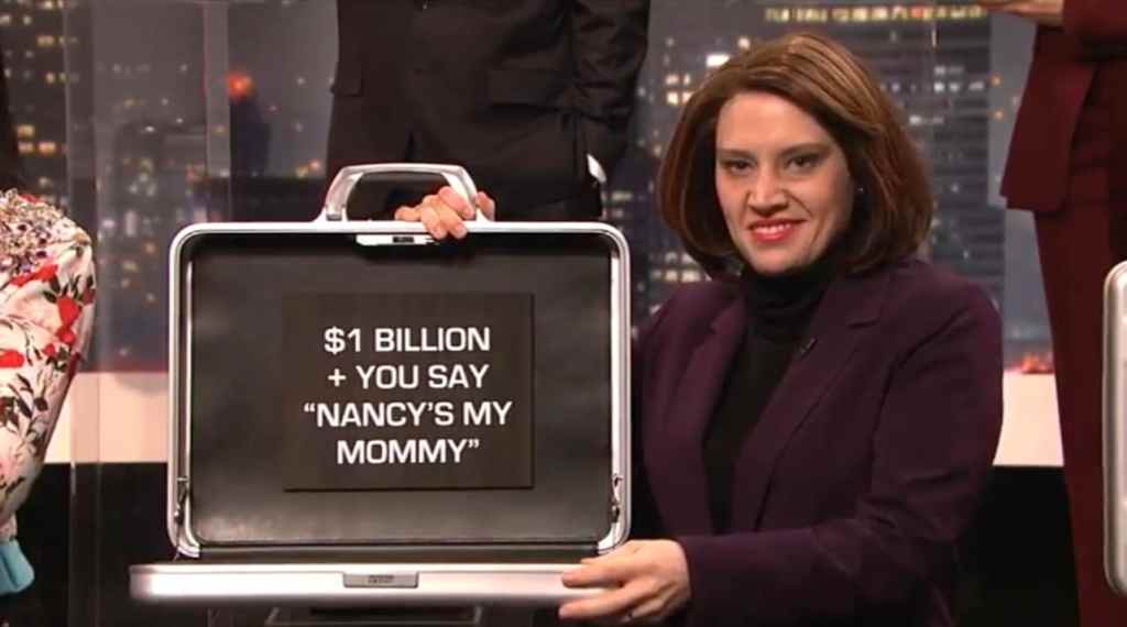- I will say, however, that I always love Kate’s Nancy Pelosi impression, as she cracks me the hell up with her uncanny imitation of Pelosi’s demeanor. It is also nice to see Melissa getting a big political impression of hers to recur with her AOC impression.