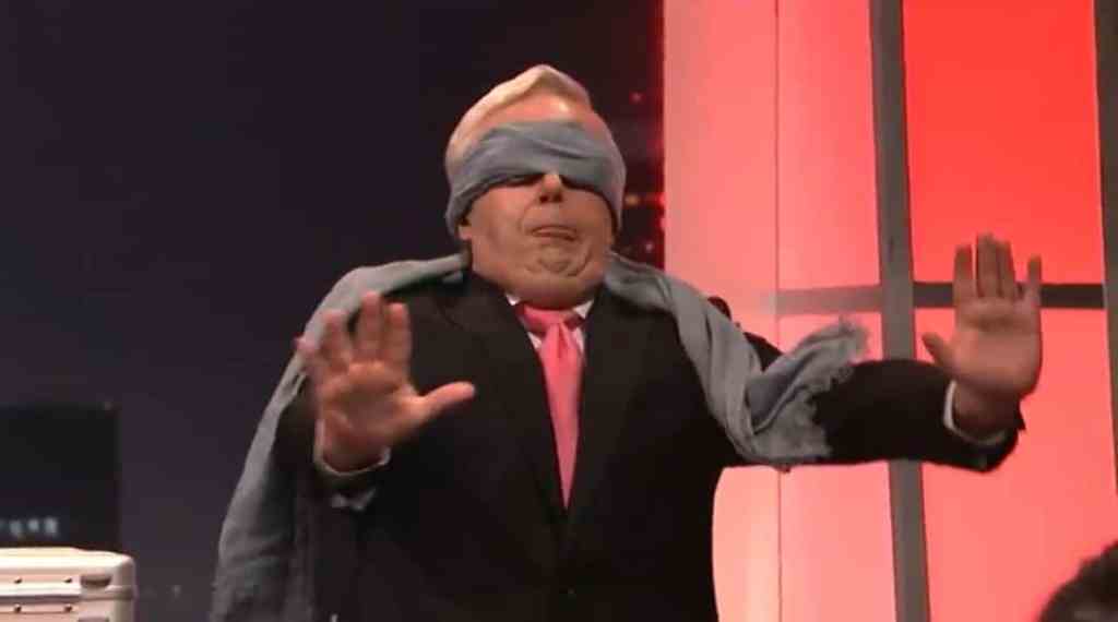 - I will say Beck got me good with the return of his hilarious Mitch McConnell; the cutaway to him hiding behind that suitcase was very funny.