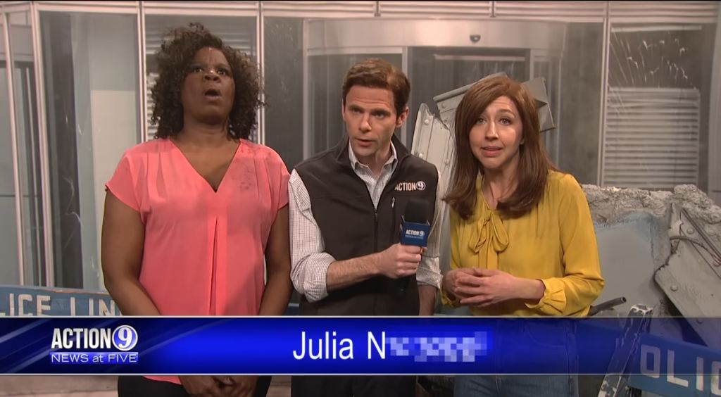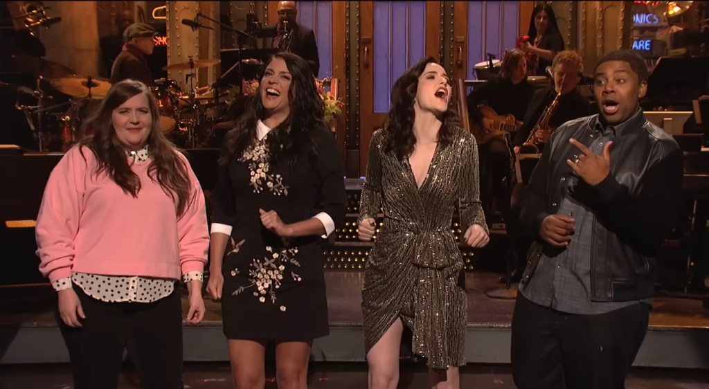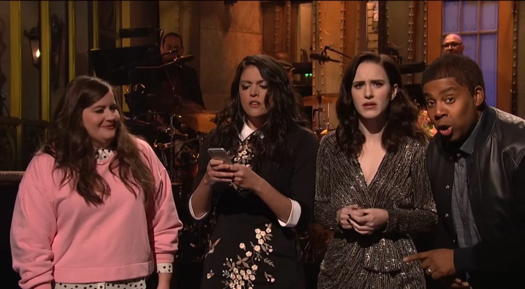 - Overall, this cold open was a very mixed bag; the scenes with Trumpwin & Harvey were completely laugh-free, but the cast (Kate, Alex, and Beck especially), gave me decent laughs here and there. I do admire the cold open’s premise, but it would’ve been much better without Alec’s Trumpwin; he absolutely killed this whole thing dead each time they cut back to him.