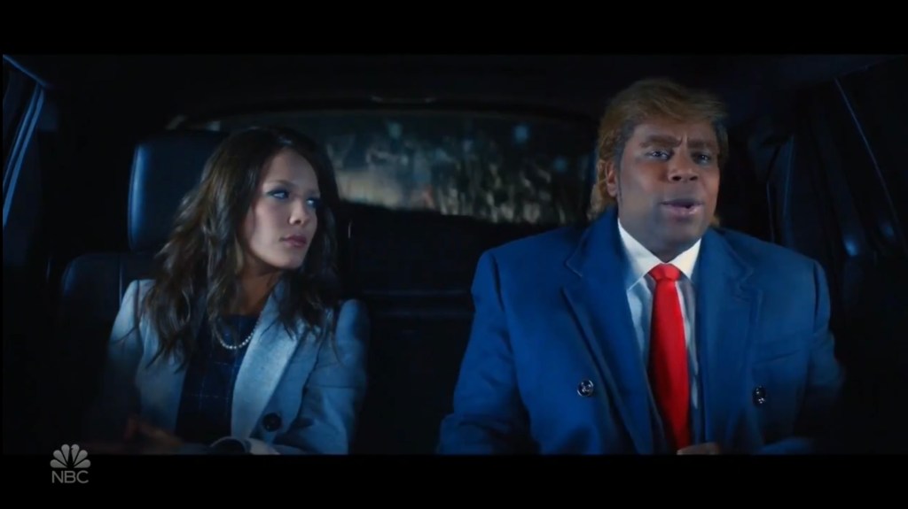 - Great visual of Kenan’s black version of Trump in the dark parking lot with that trademark haircut.
