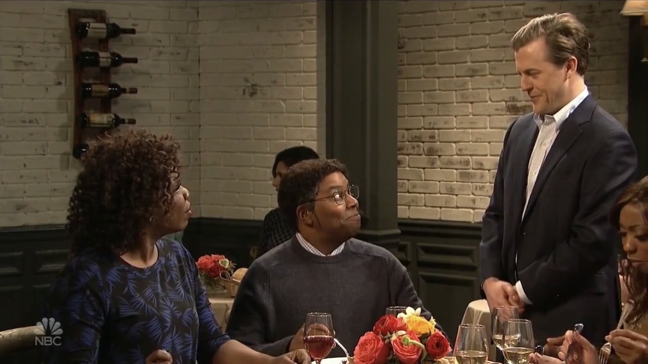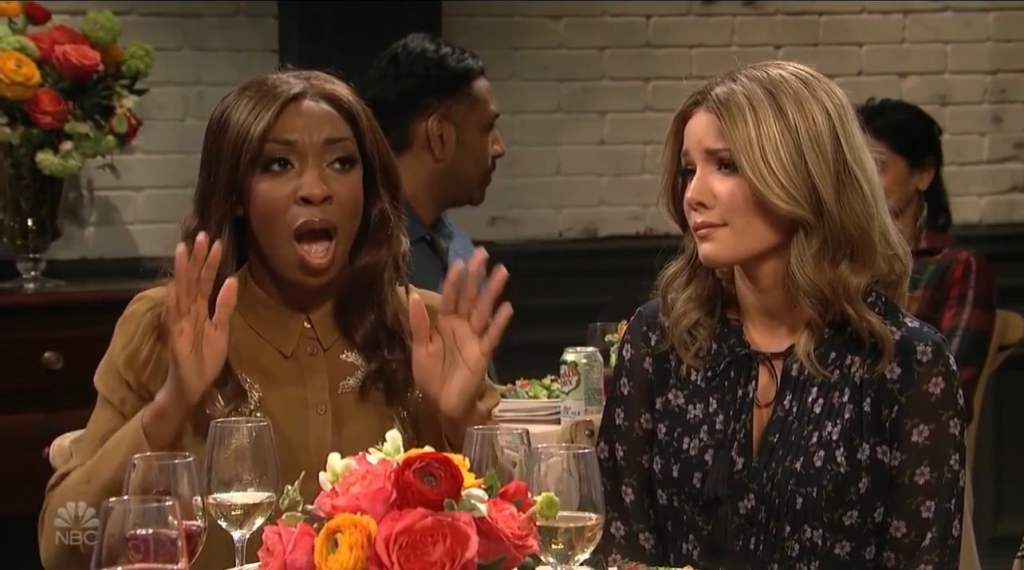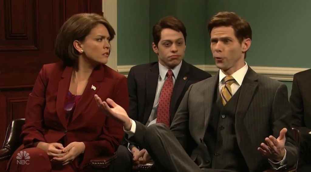 - A lot of laughs from the Virginia government officials’ inability to understand why blackface is wrong; Mikey’s line about his college Halloween costume being a black booty steals this whole sketch and causes Kenan to almost break character.