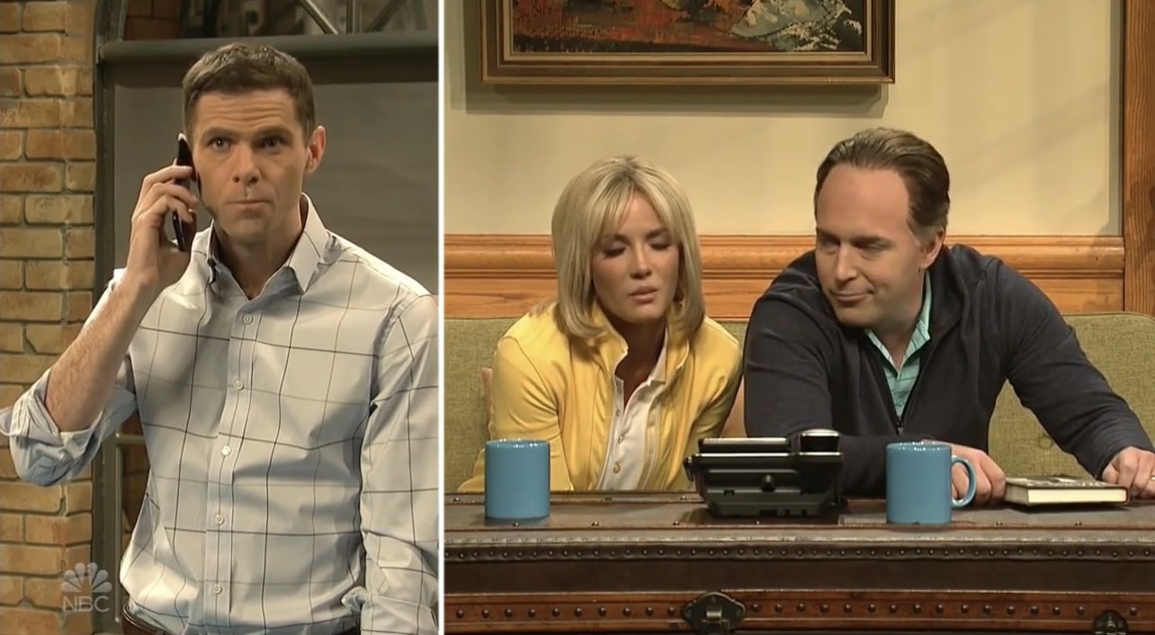 - Already, I’m loving the out-of-the-ordinary way this sketch is presented to us. This feels to me like a sketch the show would’ve definitely done during the late ‘80s era. Could’ve seem Phil and Jan playing the roles played by Beck and Halsey, as well as either Mike or Dana playing Mikey’s role.