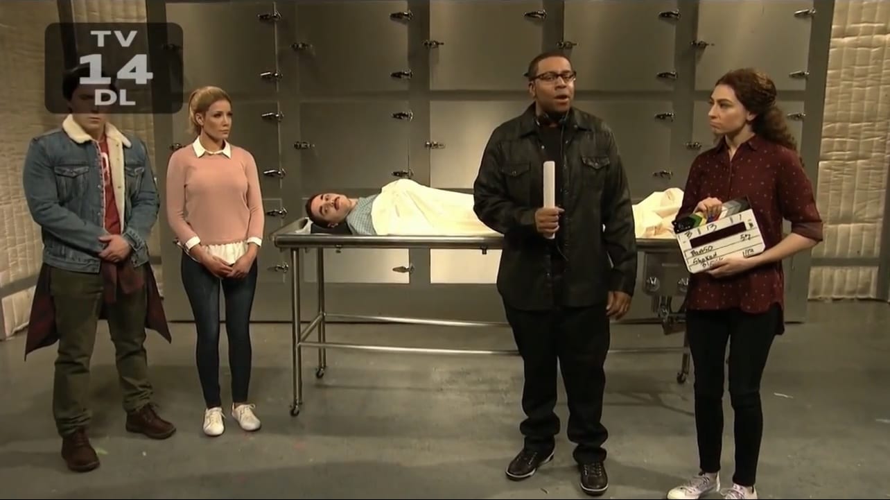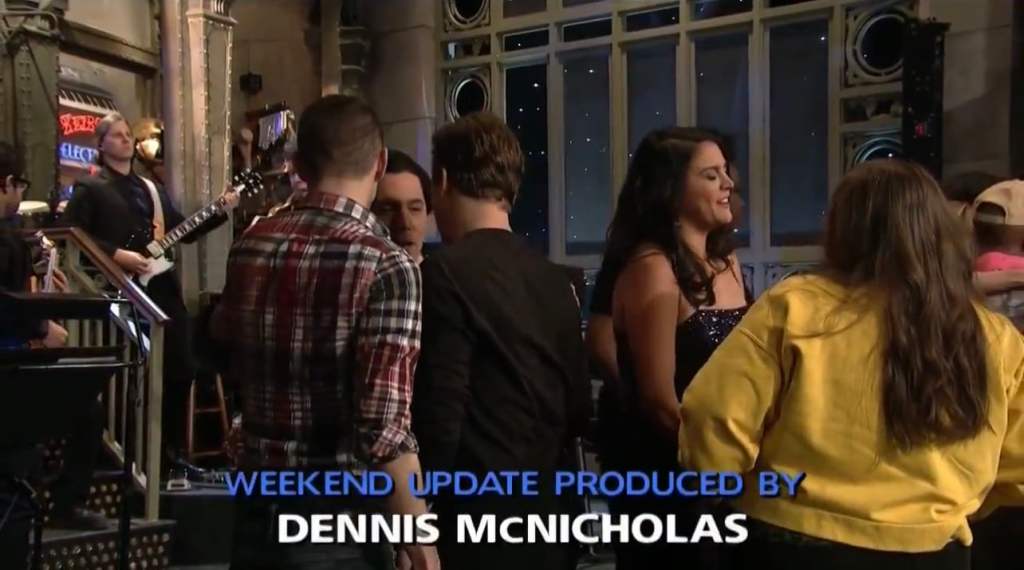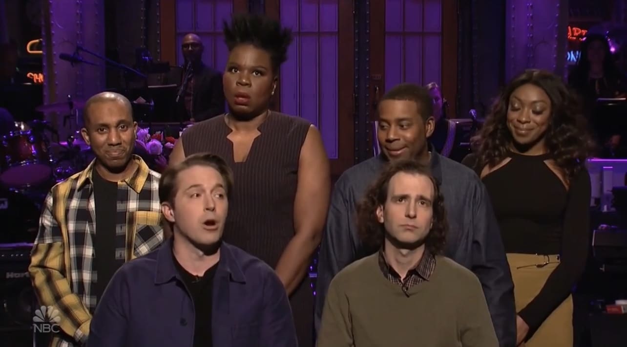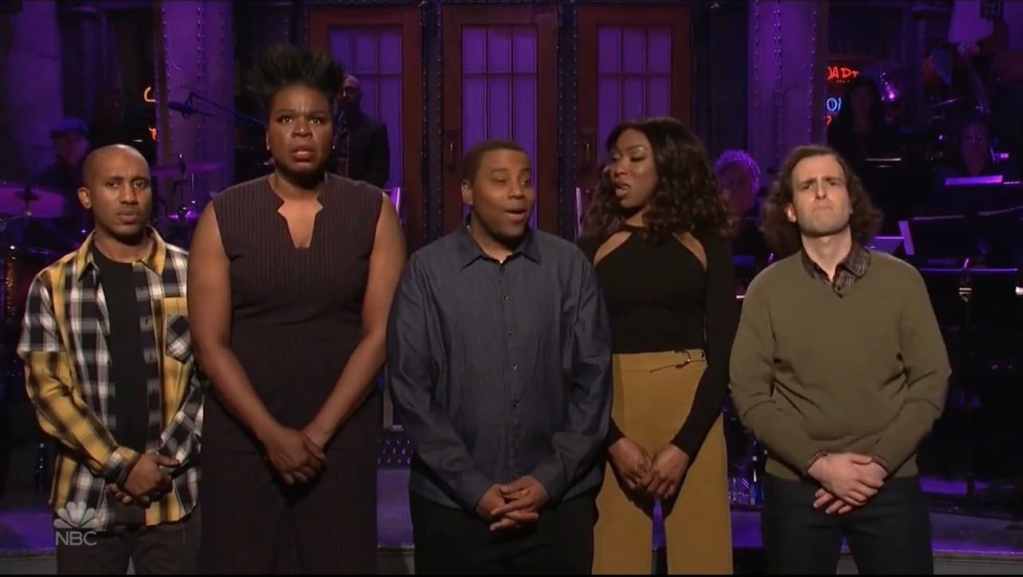 - A nice visual of Leslie and Kenan side by side at the start of this sketch. By the way, this is a rare instance of an SNL sketch taking place on the homebase stage as it is without any set assembled.