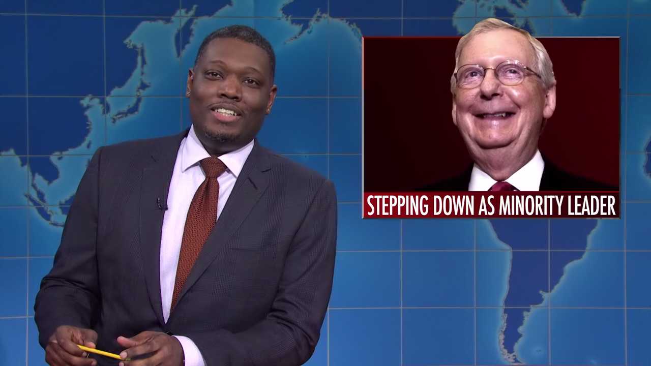 - The “seen here” Mitch McConnell string of jokes are a lot of fun and will strangely make me almost miss Moscow Mitch being the GOP leader so we can see Colin making fun of him.