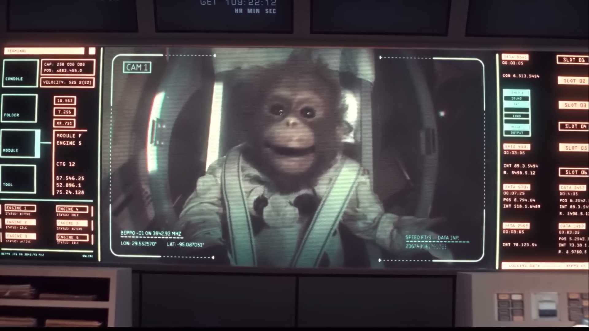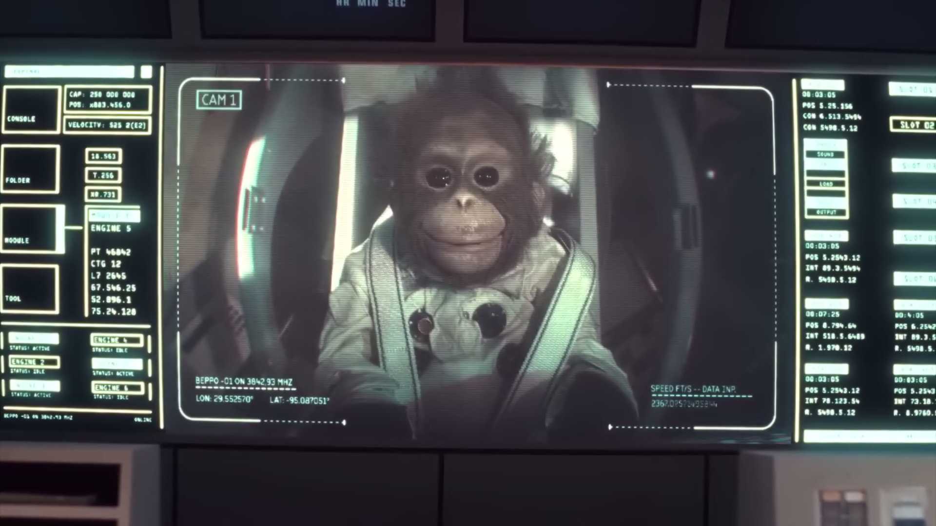astronaut monkey struggles during mission