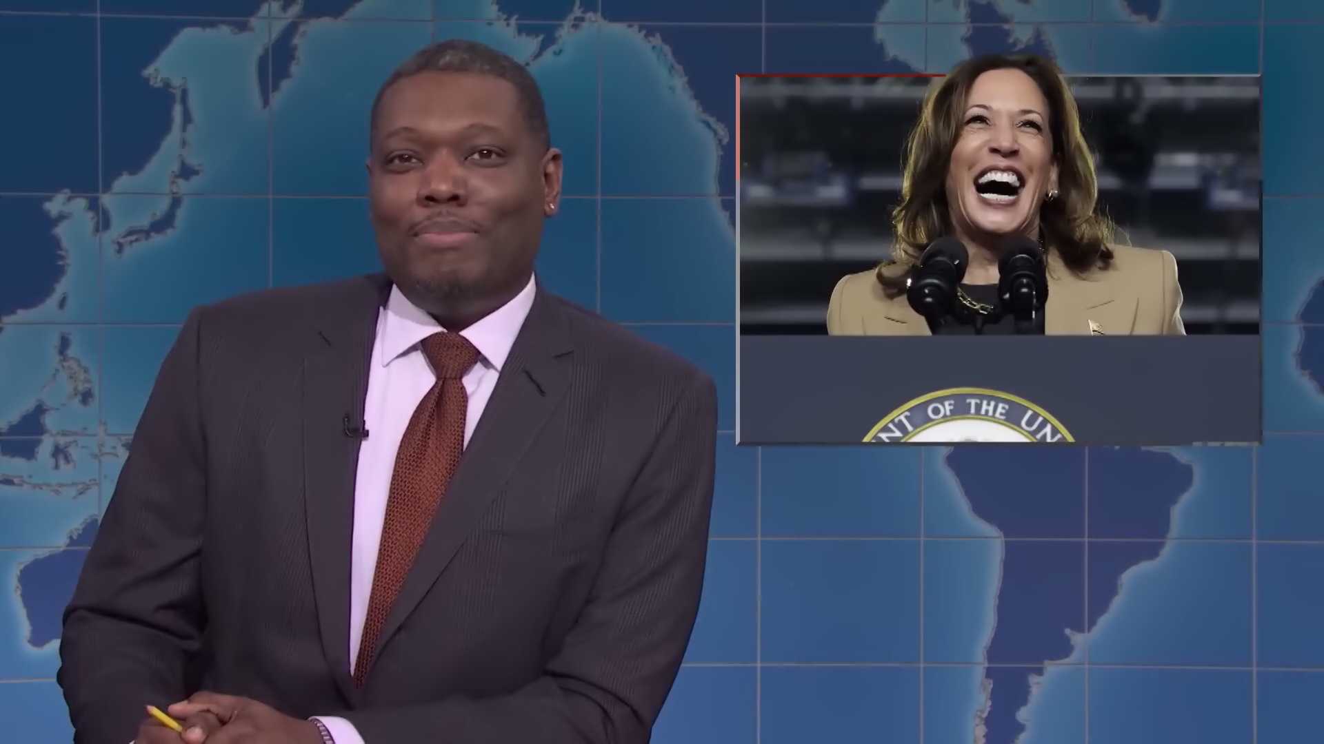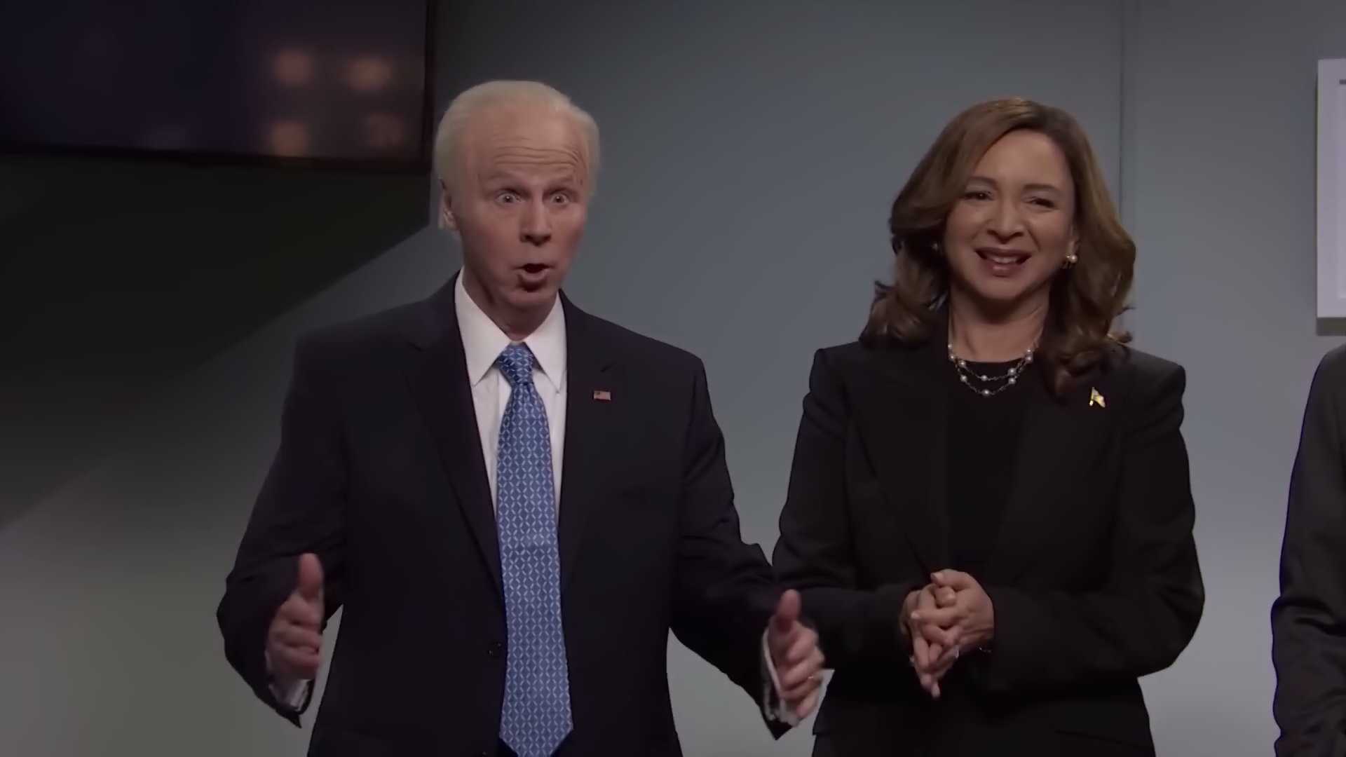 - Very extended applause break from the audience as the VP is finally revealed in this cold open. Easily one of the lengthiest breaks of audience applause I’ve ever seen on SNL. This is infectious to watch, and NGL, makes me kinda emotional.